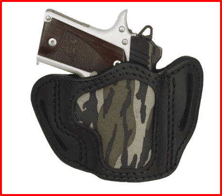 The Mossy Oak BHC has a design to fit most of your favorite pistols. Our pistol holsters are available in sizes to fit compact semi-automatic pistols, larger full-size pistols, and even pistols with optics. Featuring the open bottom design of the 1791 Gunleather, this rugged holster also accommodates a gun barrel.