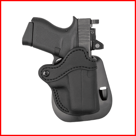 The Optic Ready Paddle Holster Compact is designed to accommodate compact and sub-compact firearms with a barrel range of 2.5″ to 3″. This allows for additional viewing and paddles giving you excellent portability.