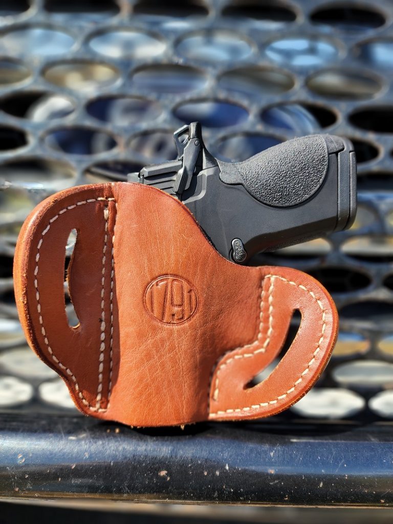 Pictured above is the 1791 BHC (which stands for “Belt Holster Compact”) outside-the-waistband (OWB) leather holster.