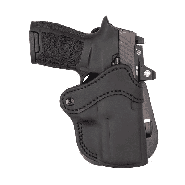This ideal gun holster features an optic and a paddle for increased portability and ease of carry. In addition, the sweat guard will keep your pistol from tarnishing and will serve as a comfortable barrier between you and your weapon, preventing it from digging into your side. The BH2.4s is available in a range of colors to complement your pistol and clothing.