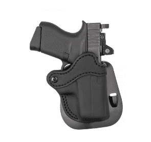 The optic-ready paddle holster compact best suits small firearms with a barrel size range of 2.5 – 3.0 inches. In addition, it usually includes an added optic cut best suited for most pistol optics. This inclusion allows for better viewing, plus paddles ensure it’s portable, adjustable, and shoving on and off the gun as quickly as possible while maintaining proper retention.