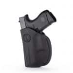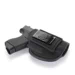 This 2 Way Multi-Fit Inside the Waistband Holster, conveniently referred to as the 2-way, is the ideal balance of quality, protection, and comfort. Our 2-way provides complete concealment and convenience, as this holster was designed with consideration to both the protection of your firearm and comfort for your skin. There are a couple of options with the 2-way with your particular carry style in mind. For example, wear it as a right-handed shooter inside the waistband and be able to slide it all the way to the middle of your back for multi-positioned concealment carry, or carry it on your dominant side in an appendix carry.