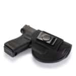 This 2 Way Multi-Fit Inside the Waistband Holster, conveniently referred to as the 2-way, is the ideal balance of quality, protection, and comfort. Our 2-way provides complete concealment and convenience, as this holster was designed with consideration to both the protection of your firearm and comfort for your skin. There are a couple of options with the 2-way with your particular carry style in mind. For example, wear it as a right-handed shooter inside the waistband and be able to slide it all the way to the middle of your back for multi-positioned concealment carry, or carry it on your dominant side in an appendix carry.