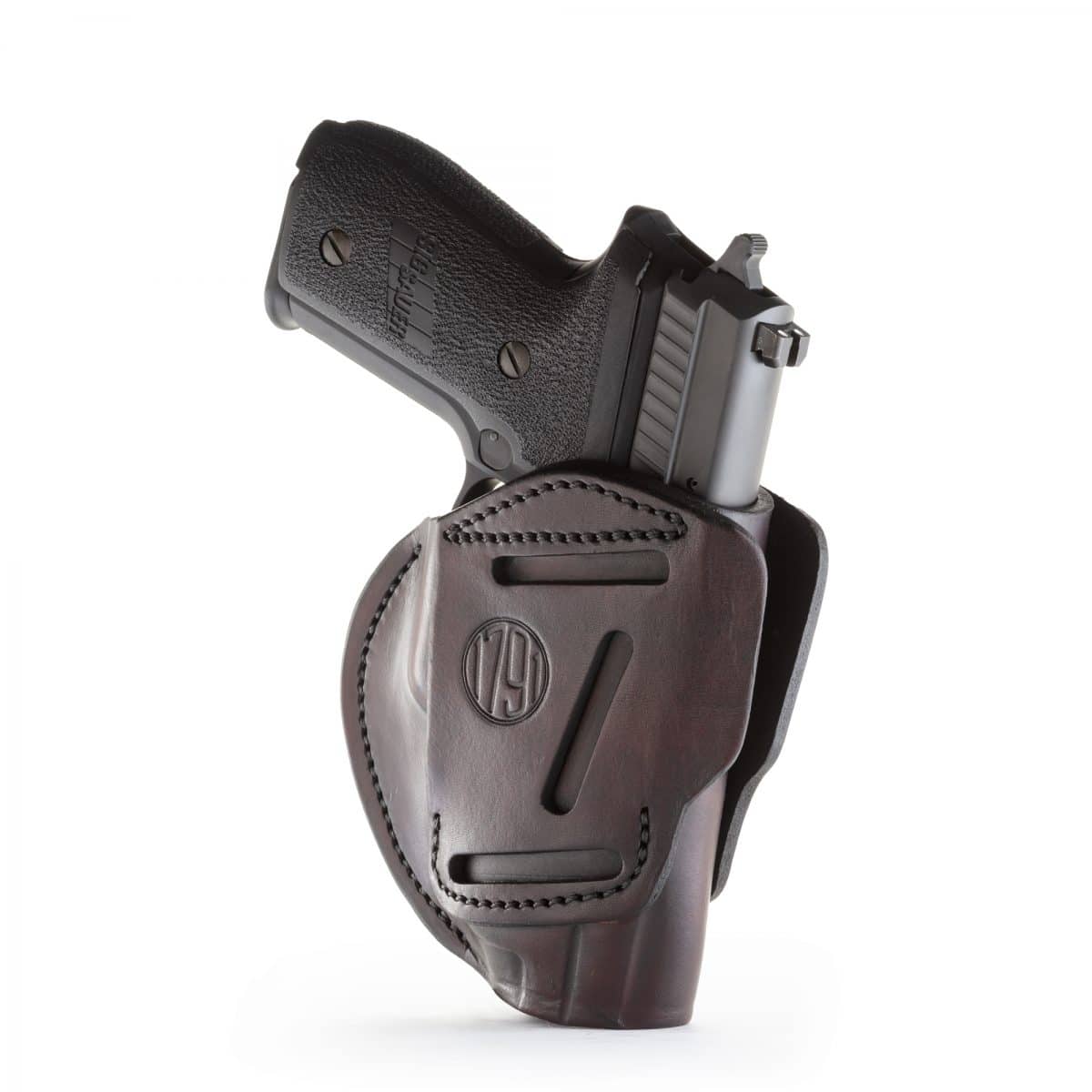 Our 3 Way Multi-Fit Outside Waistband Leather Belt Holster, conveniently referred to as the 3-way, is the ideal balance of quality protection, and comfort. Our 3-way provides complete concealment and convenience, as this holster was designed with consideration to both the protection of your firearm and comfort for you. The 3-way holster allows you to position your firearm on your belt in Vertical, Horizontal, and Cross-draw cants that accommodate your particular carry style. Because this is an ambidextrous holster, both Right and Left-Handed carrying is possible in just one holster. This means that the 3-way can handle all three cant positions anywhere on your belt. This is especially helpful for wearing a 6 o’clock position on the belt and ensuring an easier draw of your firearm for ease and comfort on your shoulder.