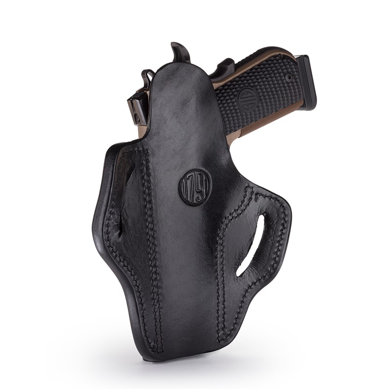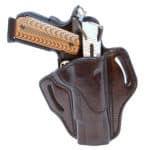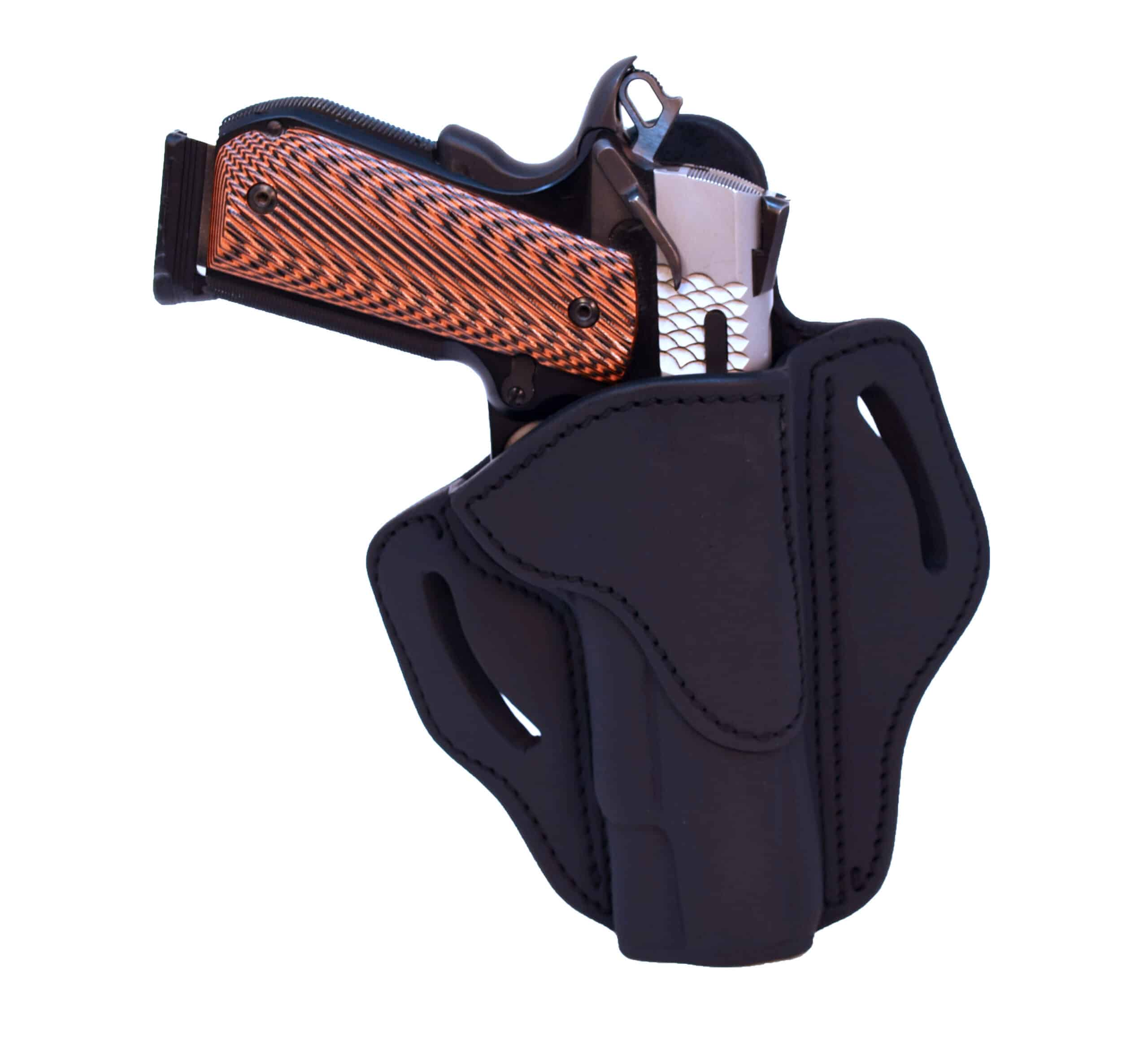 This 1911 Belt Holster, conveniently referred to as the BH1, is a marriage made in heaven for your 1911. Best fitted for 1911’s without rails it is an attractive holster that fits like a glove and offers excellent retention with barrel lengths from 4 inches to longer. Additionally, the sweat guard will protect your gun from tarnishing and will act as a comfortable barrier between you and your hammer preventing any gouging into your side. The BH1 comes in a variety of colors to match your gun and attire. It will fit of your 1911 firearm perfectly and when wearing this OWB belt holster you will find it holds your gun tight to your body offering reliable and comfortable carrying all day long.