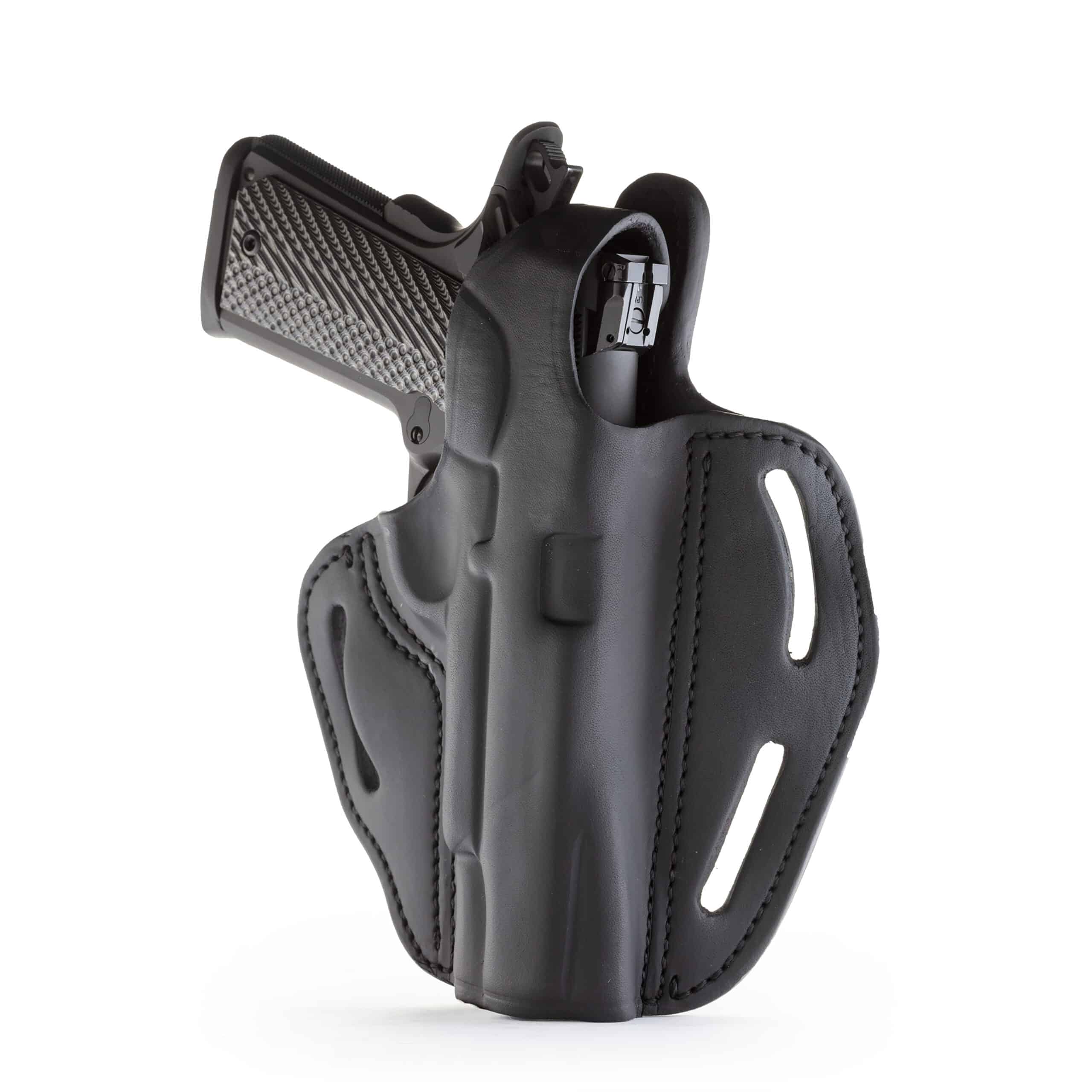 The BHX delivers incredible retention and superior leather and build quality. It also includes 3 belt loops that allow you to carry two distinct positions. The FBI-Cant allows for a quick reaction draw of your weapon and the Back-Cant is intended for faster pickup of your target, especially useful when sitting or driving. The BHX is a high-end leather design that is molded and contoured for your pistol and accommodates taller Suppressor Sights, yet is comfortable against the body due to the handcrafted premium 100% Certified American, Heavy Native Steerhide leather. This holster’s interior is hand-finished to help protect the bluing of your pistol and includes design enhancements like a reliable Thumb Break, multi-cant positioning options on the belt, double stitching for reinforced lifetime enjoyment, and more barrel room for higher front sights.