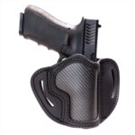 This Carbon Fiber Open-Top holster is engineered out of 100% American Premium Heavy Native Steerhide leather and woven Carbon-Fiber. Searching for a G19 holster? S&W holsters? We’ve come up with the perfect formula for lightweight flexibility meets durability.