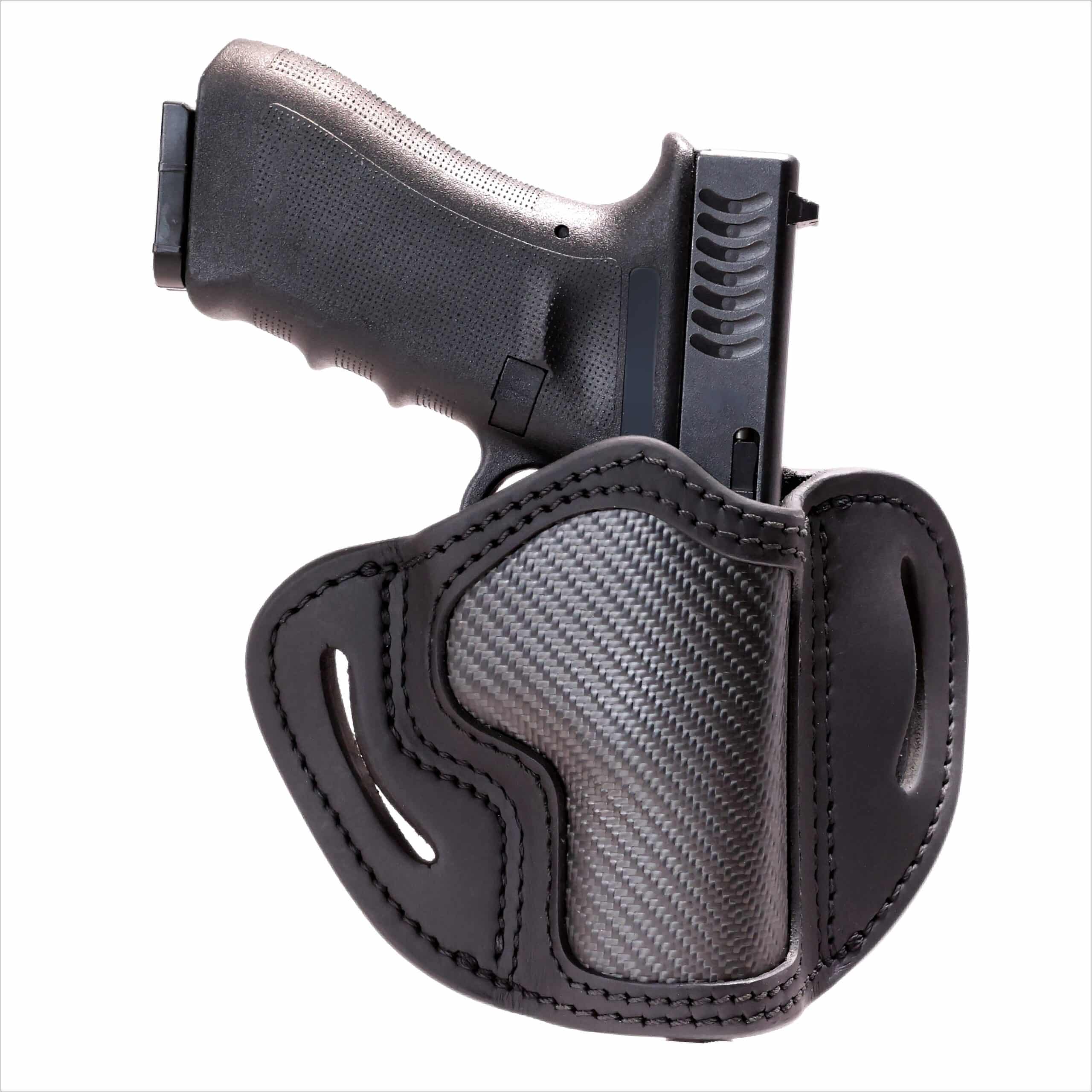 You need a strong, durable holster that performs in all weather conditions and situations where stealth is warranted. There are no extra retention devices on our open-top pancake holsters. Carry this carbon fiber gun holster outside the waistband on a sturdy leather gun belt for easy access whenever and wherever you need it.