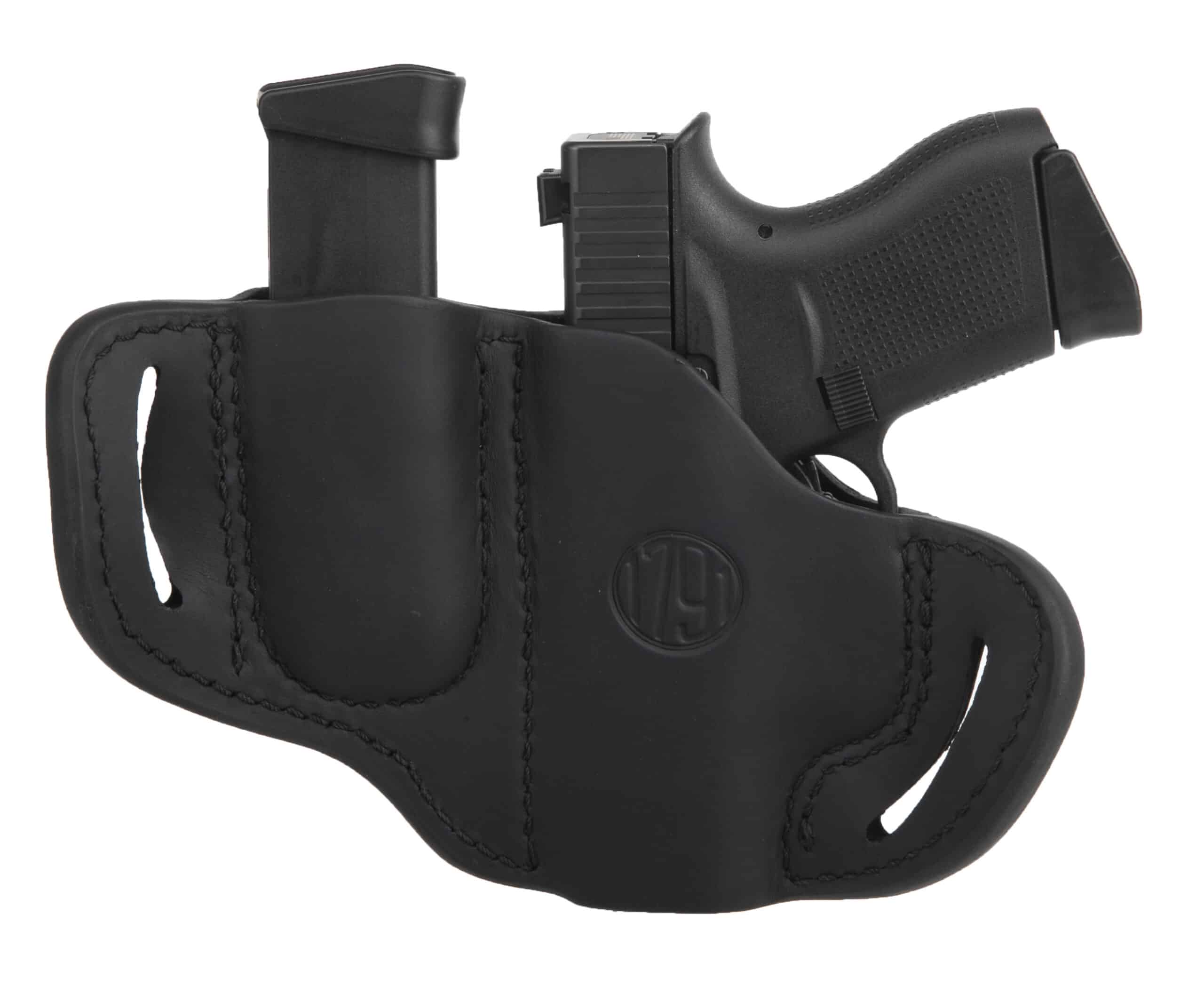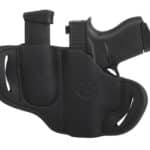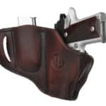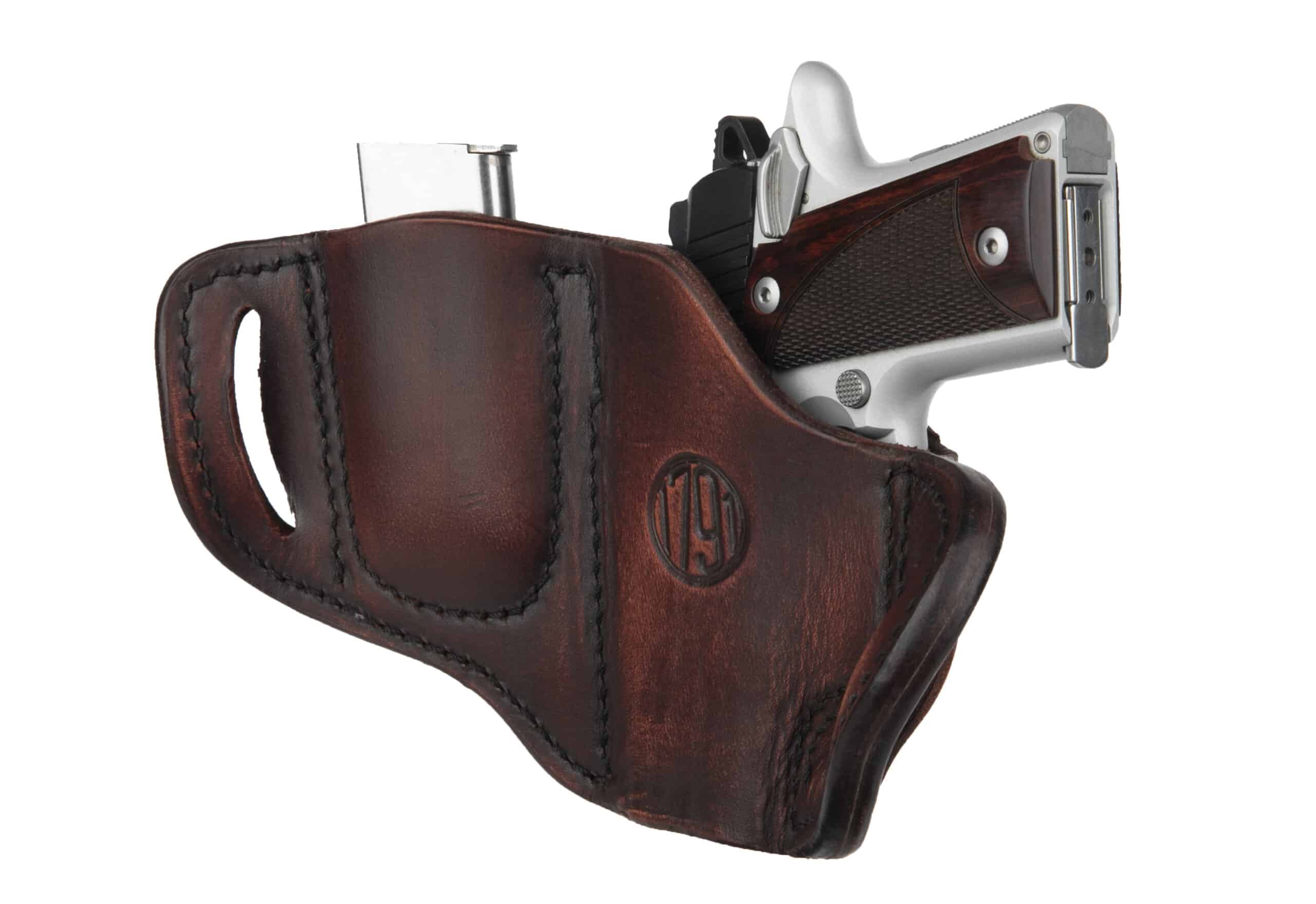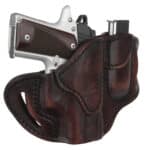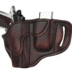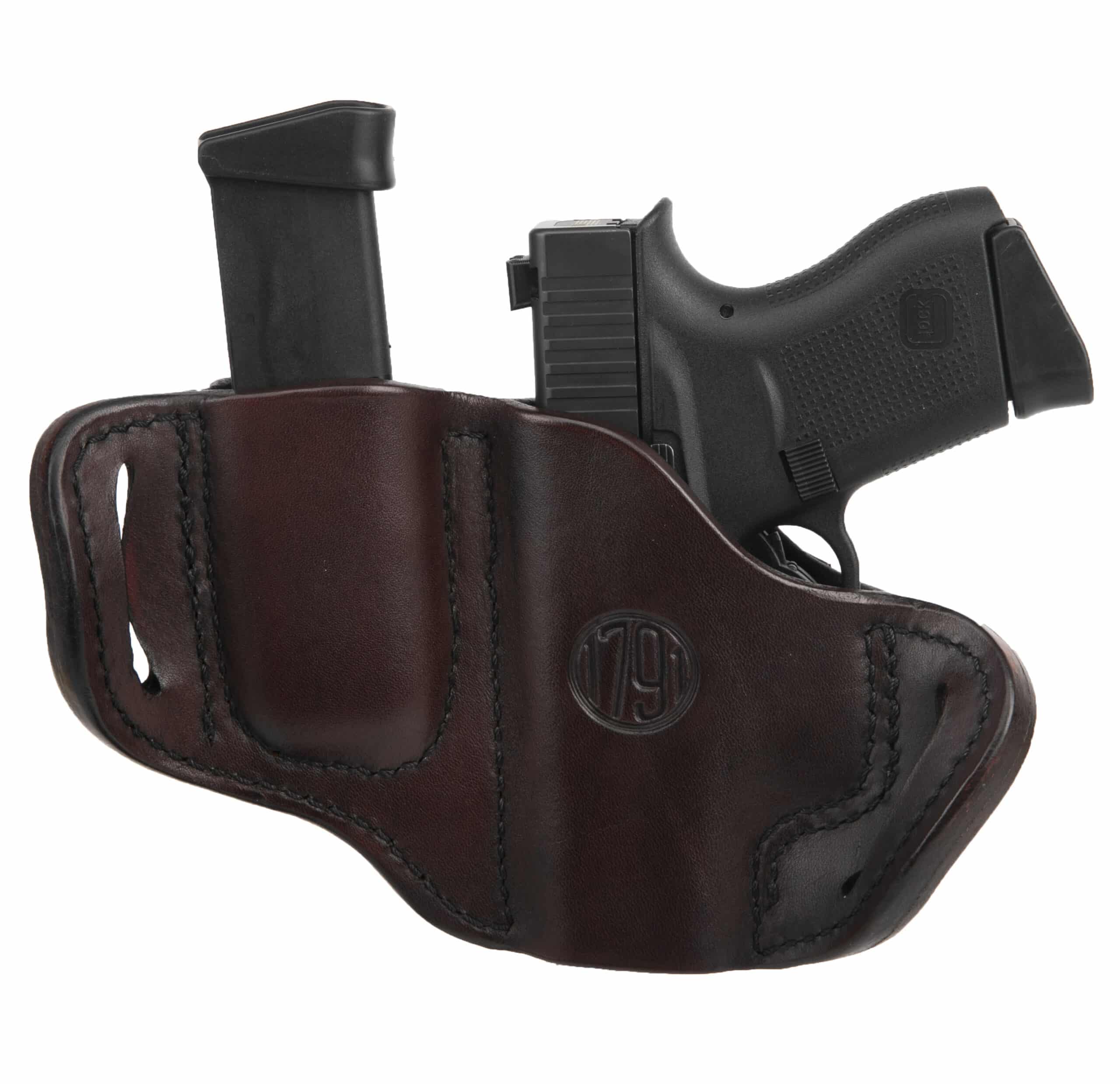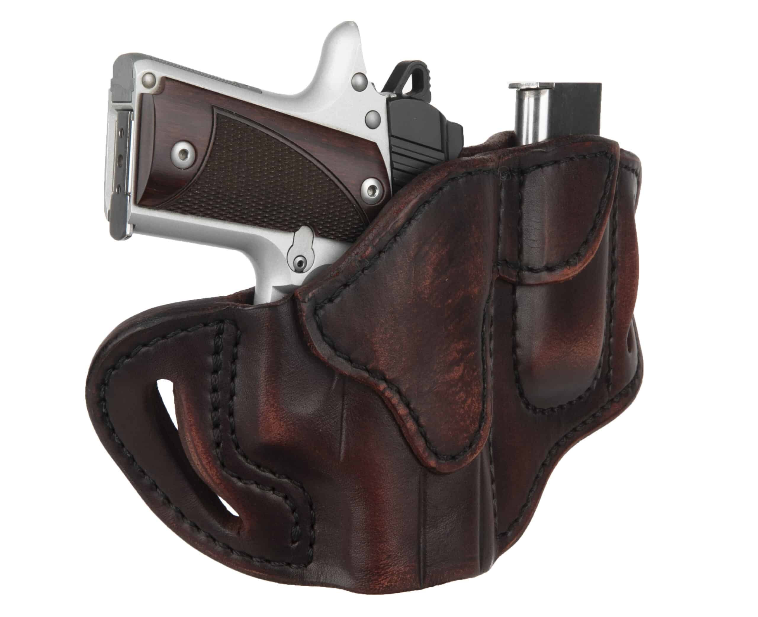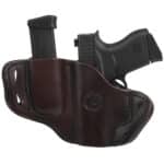 The Combo Open Top Multi-Fit Belt Holster and Mag Pouch is a pancake-style holster that holds your gun and ammo tight using natural pressure between double-stitched leather and a weeks-long, wet-molding process. The premium heavy steer hide leather we use is of the highest quality, made to last by fourth-generation leather artisans. The open top design and curved, wide-spaced belt loops optimized for a 1.5” belt allow a closer ride and more comfortable carry.