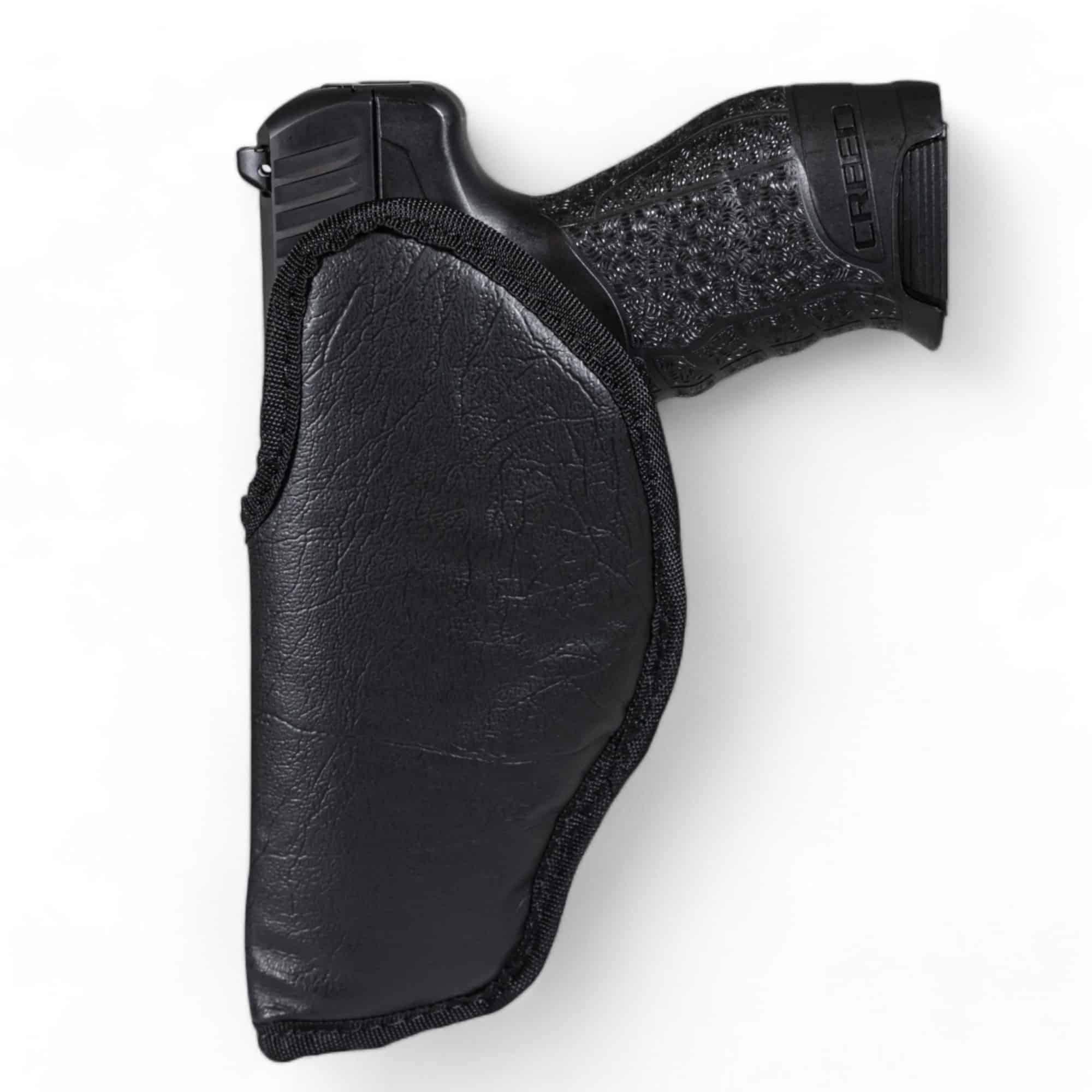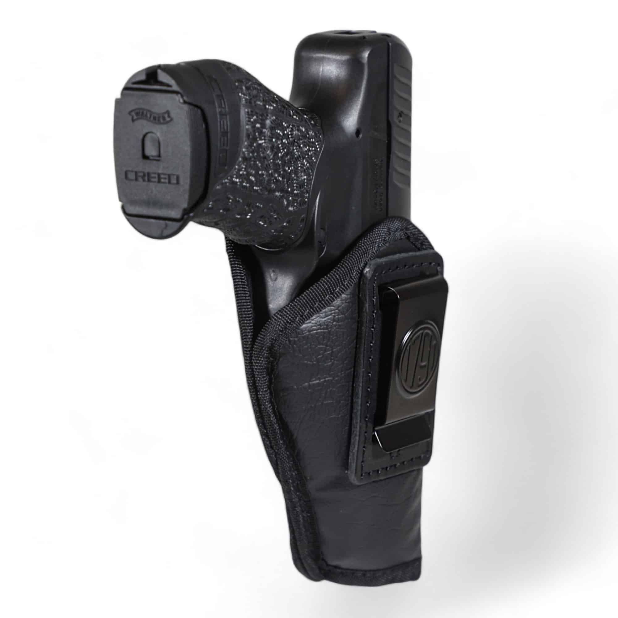 The EcoCarry line of inside the waistband (IWB) concealment holsters is engineered for maximum comfort. All EcoCarry holsters come with a padded foam interior to ensure your firearm is secure and protected, a high-tang sweat guard that serves as a moisture barrier and sweat blocker, and a sturdy spring steel belt clip that fit belts up to 1.5″ wide while providing all-day security. The soft exterior provides optimal comfort coupled with abrasion resistance to keep your firearm protected from daily wear and tear. EcoCarry holsters are optic ready to accommodate most rear mounted red dots and are the perfect companion for your IWB carry needs.