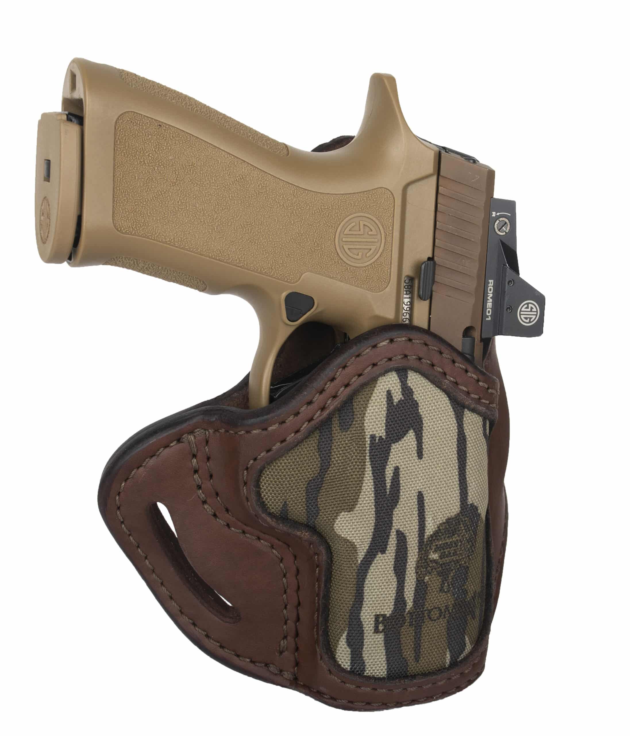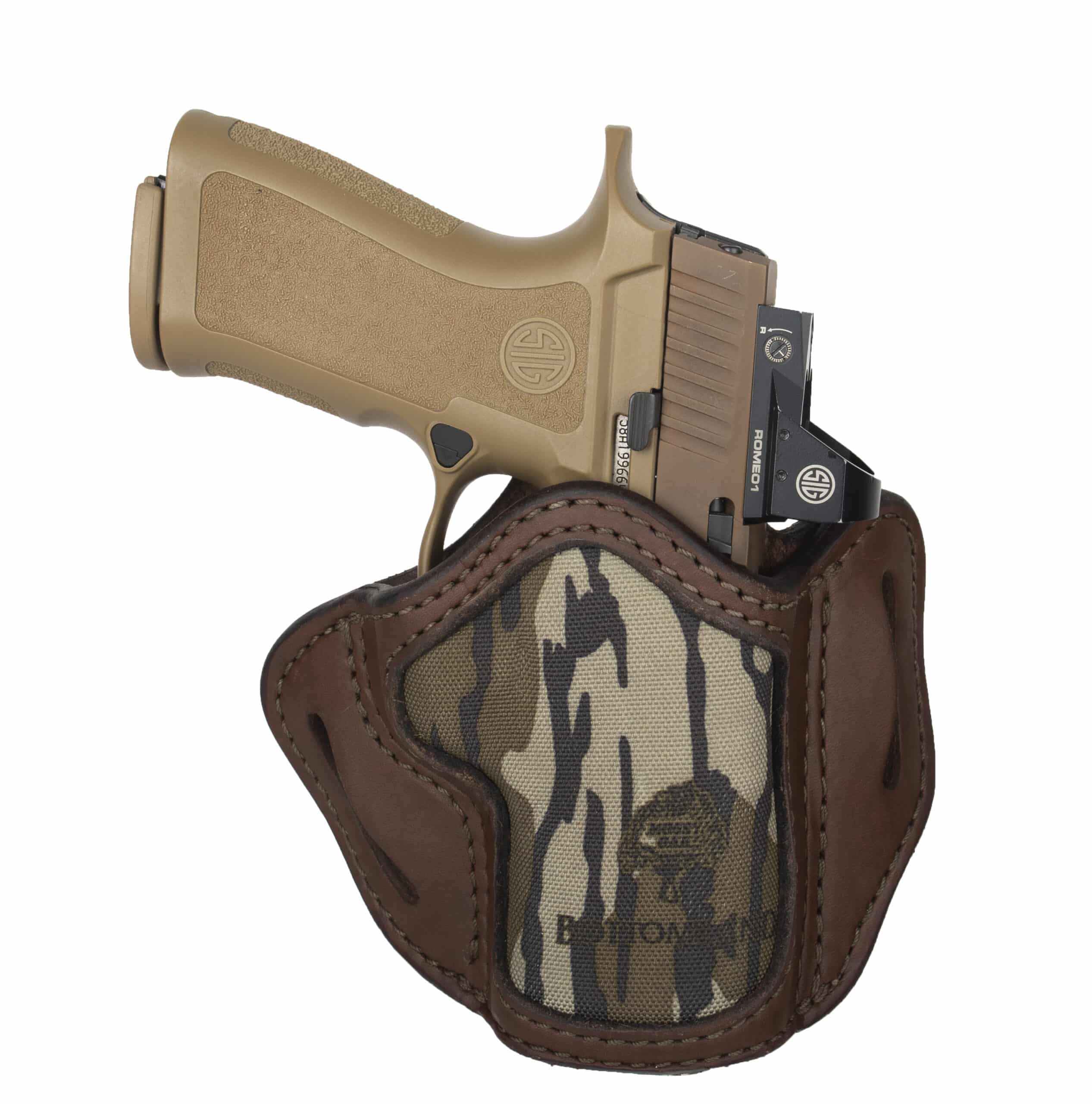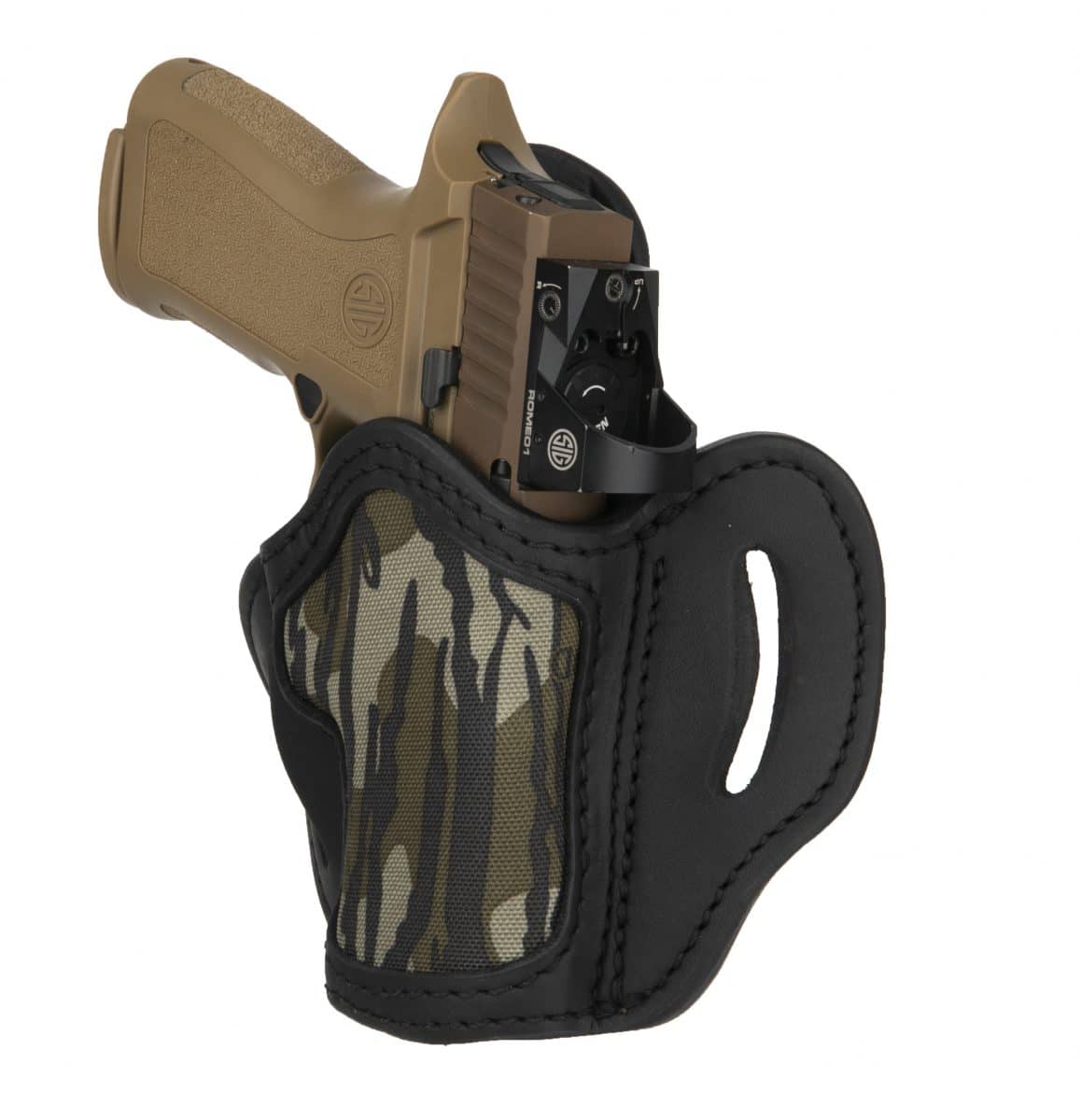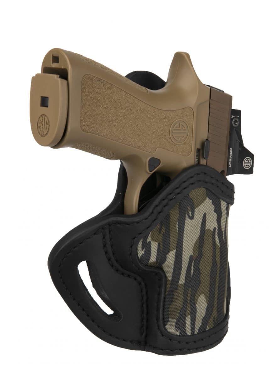 This Mossy Oak Open Top Multi-Fit Belt Holster, conveniently referred to as the MOBH2.4S, offers excellent retention for a wide range of firearms. Fittings 4 inch barrels flush, the BH2.4s is designed to accommodate the smaller carry versions of full frame firearms. It can also accommodate larger barrels with the additional visible out of its open-bottom design. Designed to be carried in FBI cant on the dominant side, the BH2.4s is a great open-carry holsters that can also be concealed using a longer shirt or jacket.