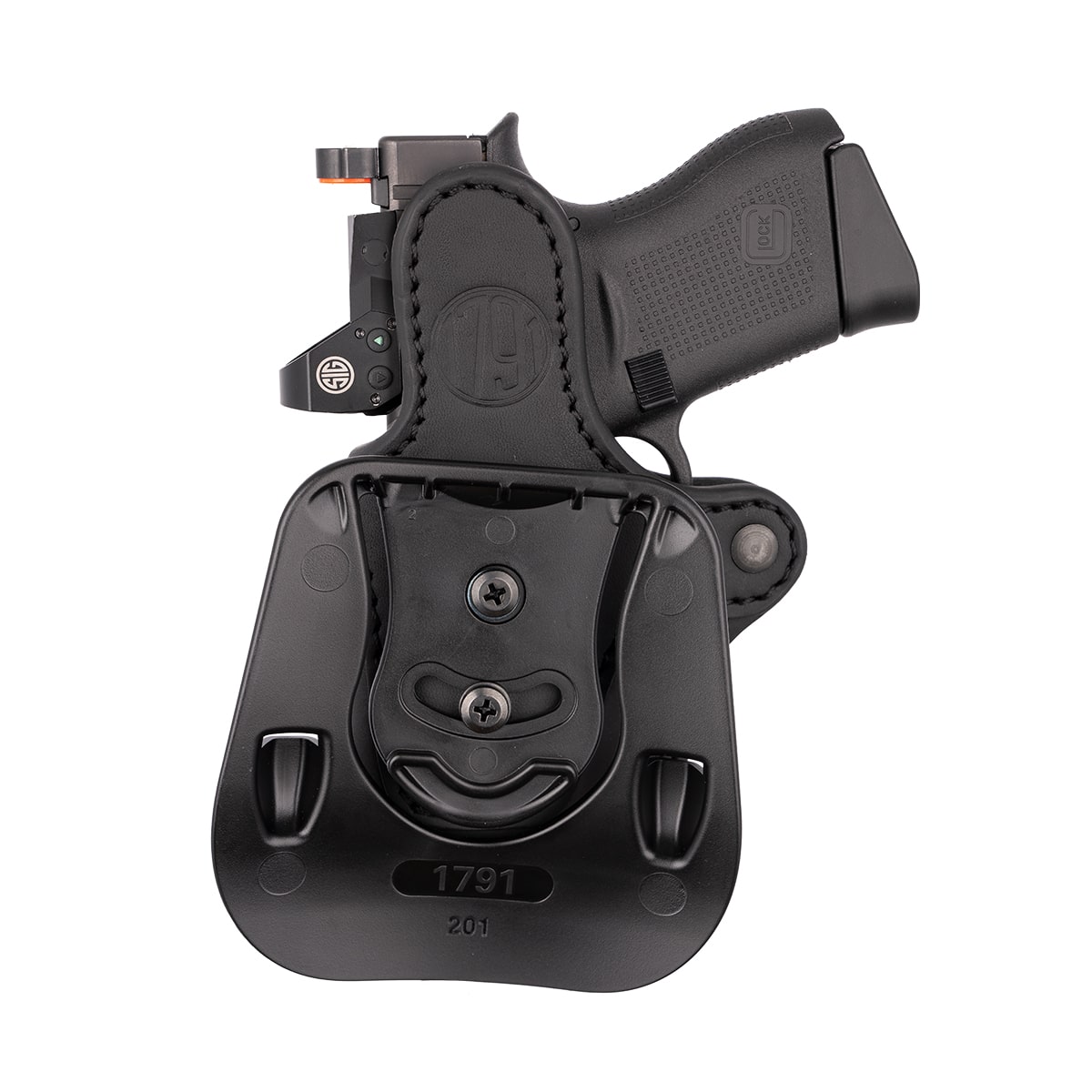 Our Optic Ready Paddle Compact holster is best suited for Compact Firearms with barrels in the 2.5 to 3 inch range. Includes an added Optic Cut to accommodate most pistol optics. Additionally, the sweat guard will protect your gun from tarnishing and will act as a comfortable barrier between you and your hammer preventing any gouging into your side. The Compact comes in a variety of colors to match your gun and attire. The paddle is adjustable and allows for quick on and off while ensuring proper retention.