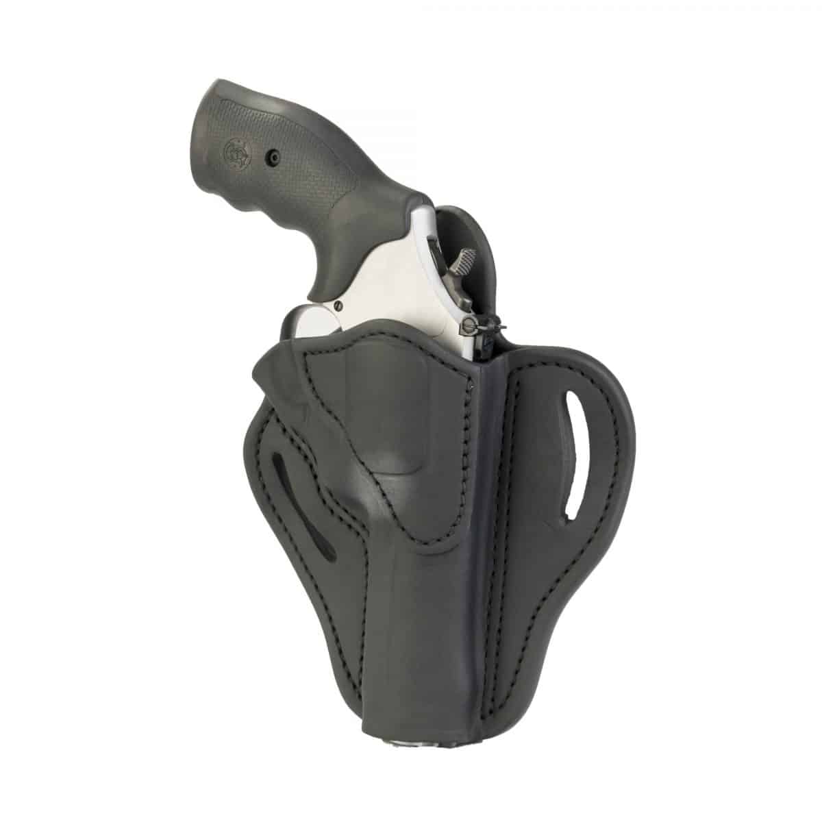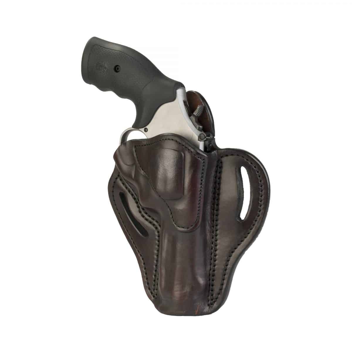 • Comfortable – Some people may wear snub-nose revolvers in a pocket holster or IWB for a concealed carry, but the most popular type of holster for the longer barrel k-frames is the OWB belt holster we offer. It’s by far the most comfortable way to carry all day, either on your weak side or your strong side hip, depending on which type of draw you prefer.