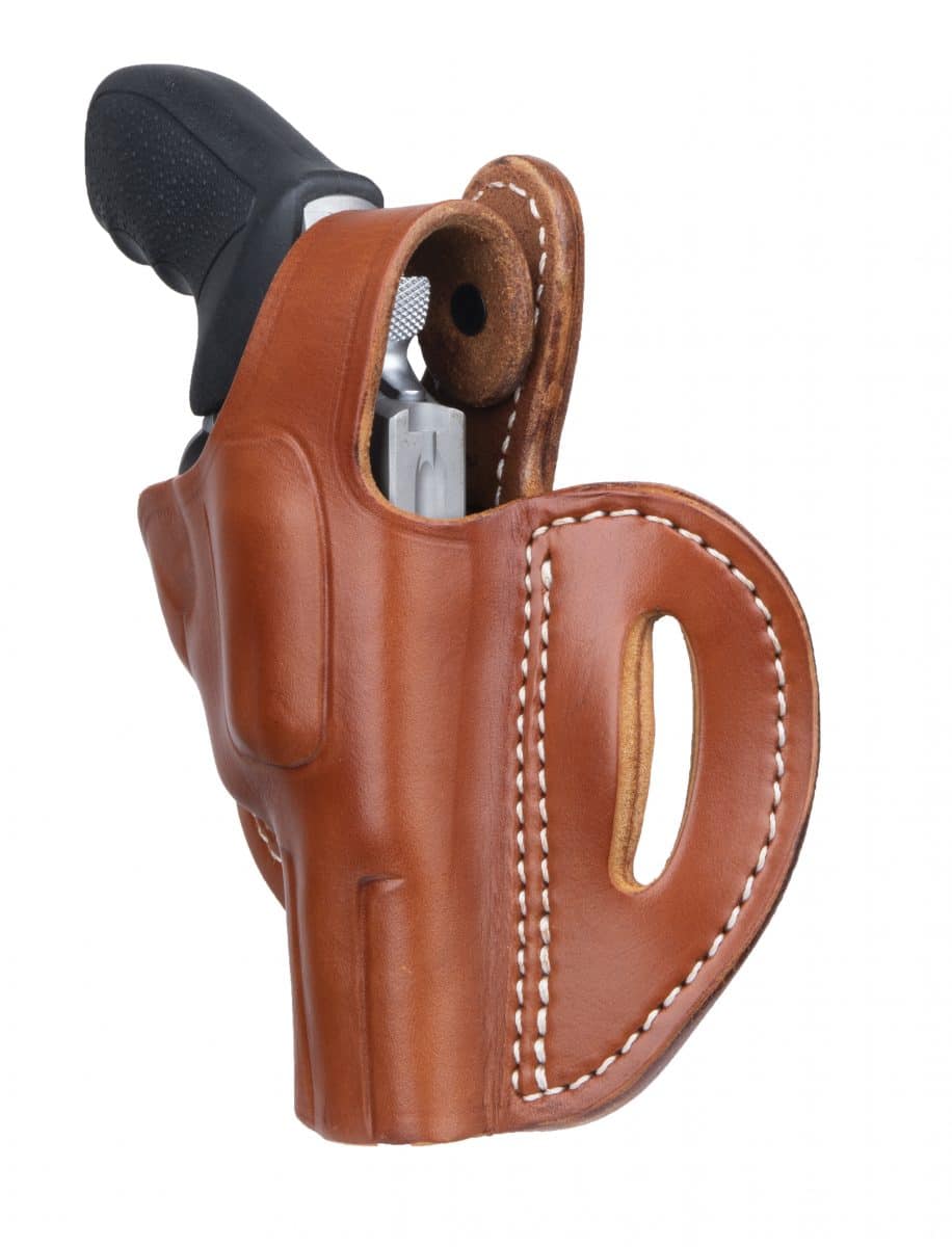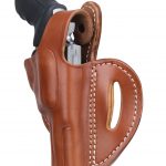 - Retention – Some holsters use thumb breaks, thumb loops, or trigger guard locks to hold the firearm in place while you’re moving around. Unless you’re doing acrobatics, a sturdy leather holster with double-reinforced stitching should hold your revolver firmly in place.