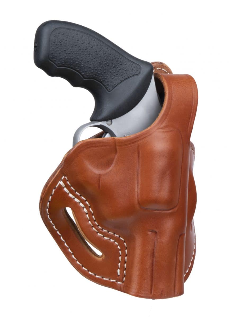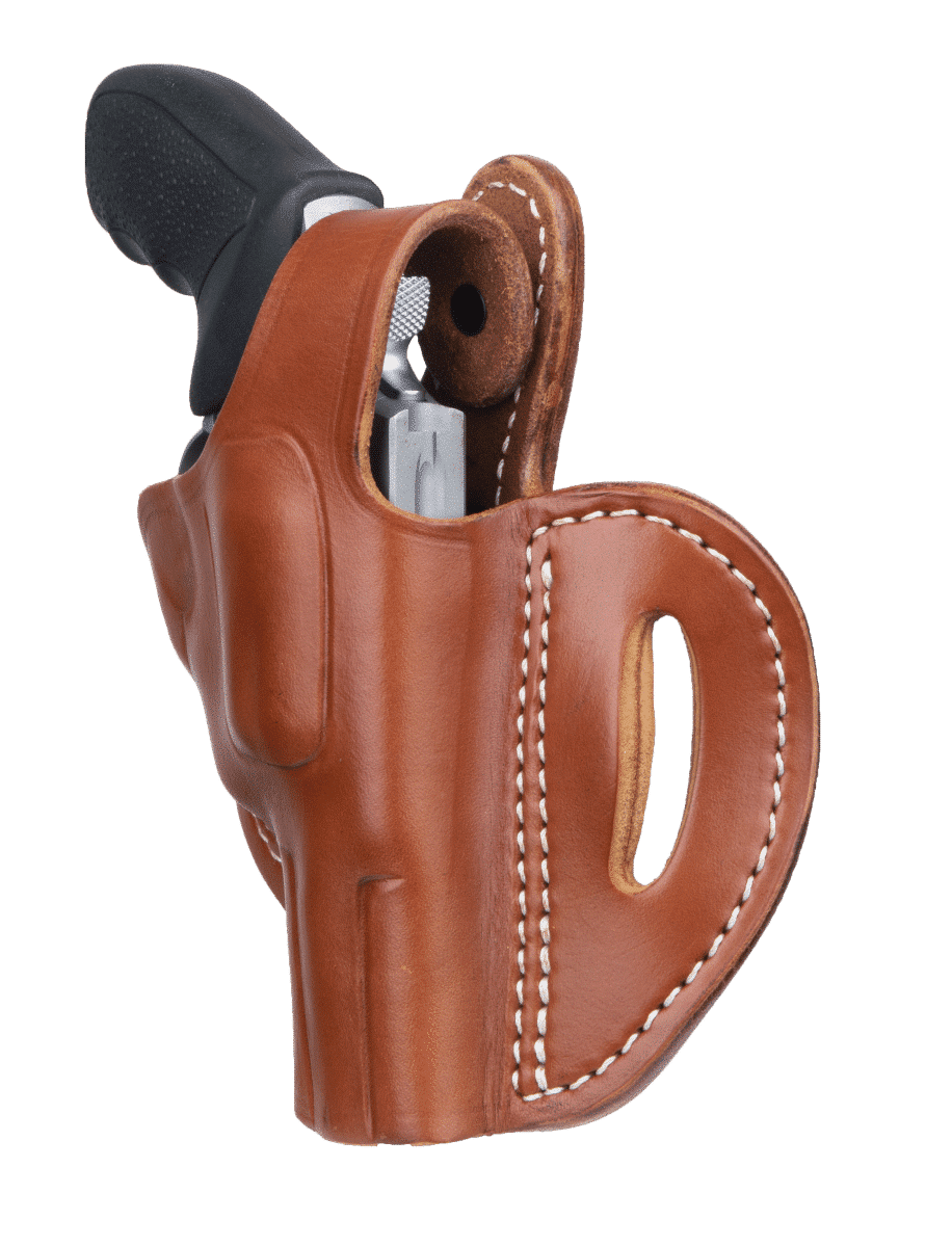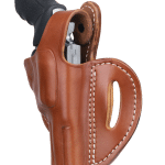 We’re a relatively young company, but our leather revolver holsters offer excellent quality at an unbeatable price. Each custom-molded revolver holster is hand-stitched out of 100% Certified American heavy native steerhide by fourth generation leather artisans. We routinely service law enforcement, military personnel, security guards, veterans, huntsmen, sports shooters, and other patriots to meet their revolver holster needs. If you’re looking for a k-frame holster for your longer barrel revolvers, we’ve got that too!