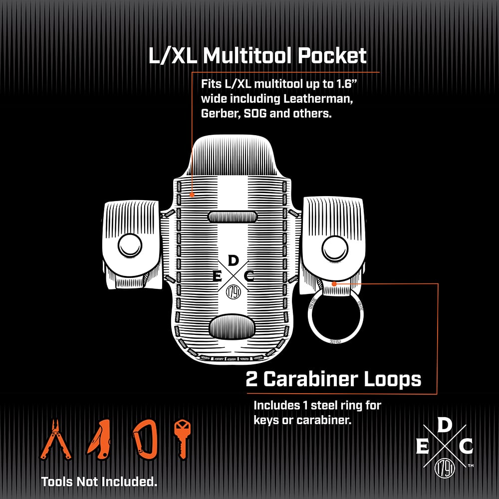 • Multitool Pocket: Fits tools up to 1.6″ wide including Heavy Duty Leatherman Super Tool 300, Surge, OHT, MUT | Gerber Truss, Multi-Plier 800, Splice, Vise, Center-Drive Plus | SOG Poweracess, Flash MT and similar size tools.